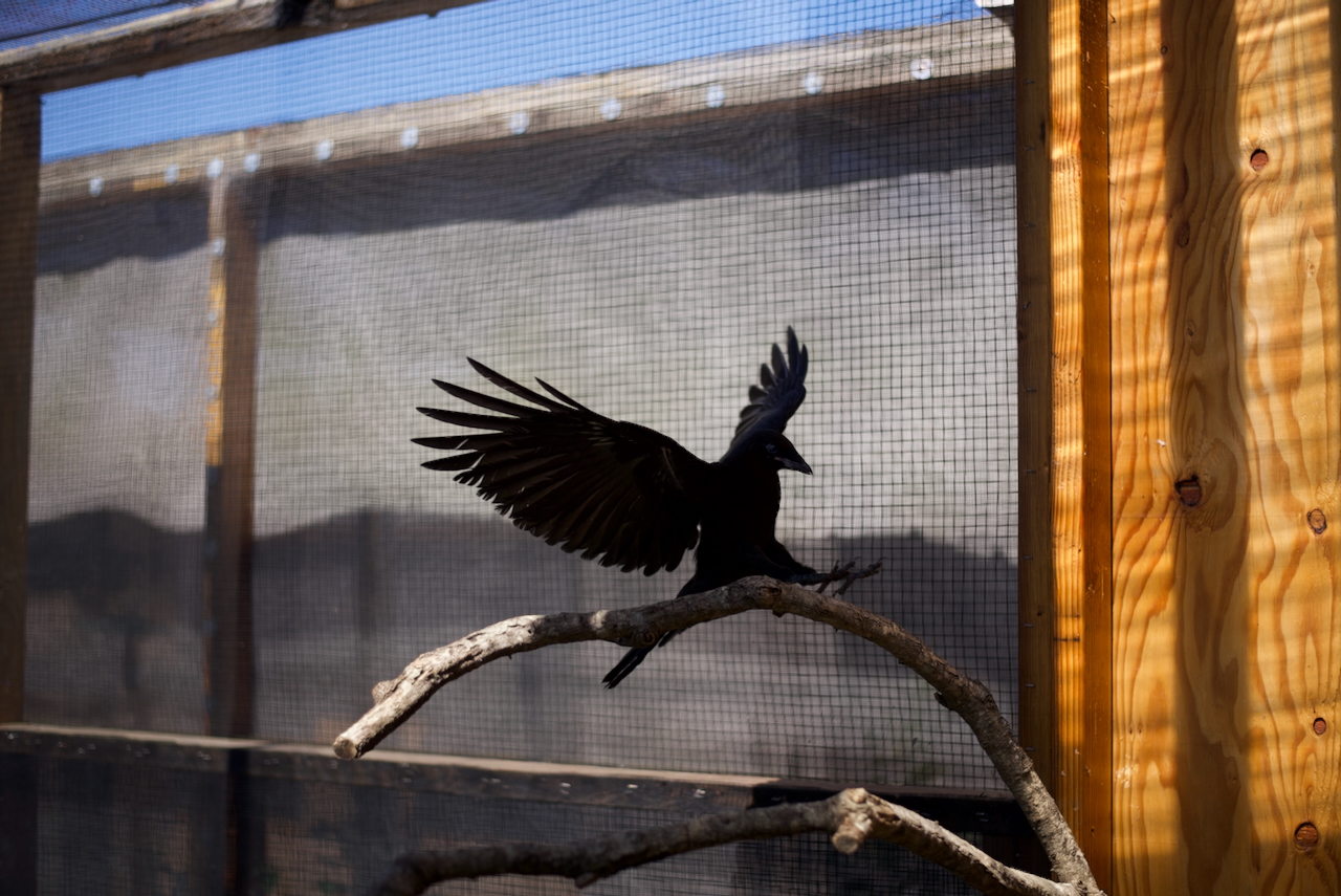 Often, juvenile crows make a few mistakes – perfectly normal for adventurous and bright adolescents to run astray – which separate them from their family. In such cases, if they come to us, we can sometimes get them home. Re-uniting a crow baby with crow parents is the best possible outcome. Of course that’s not always possible. In which case, we have an aviary and diet that will have to do, until they can be released, able to be independent, able to be an adult crow. Learning how to do this effectively is a life-long journey.